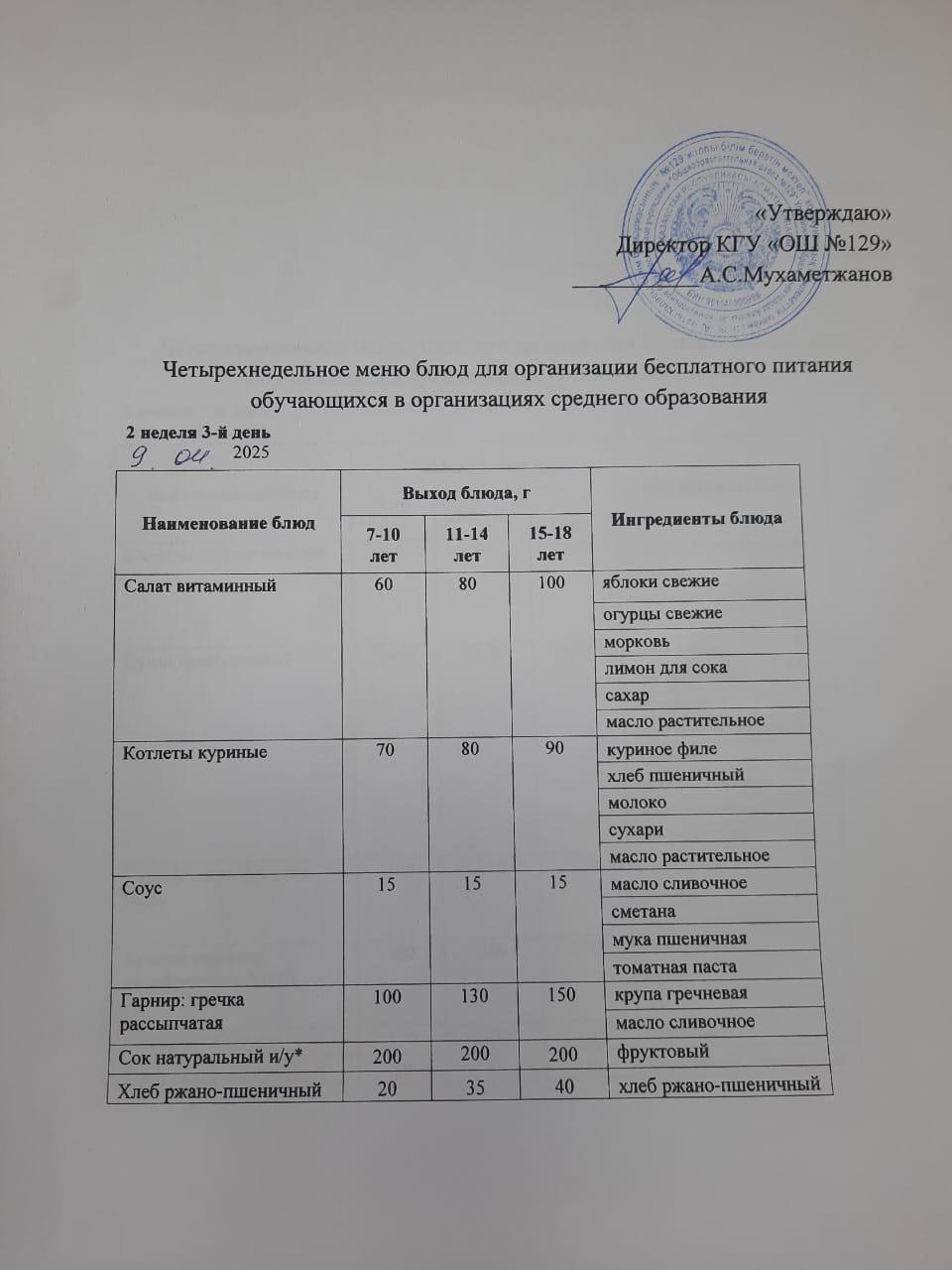 09 сәуір 2025 0 1 2 3 4 5 09.04.2025 арналған асхана мәзірі/ 09.04.2025 Меню столовой на год Осы беттің QR-коды:QR-код этой страницы: