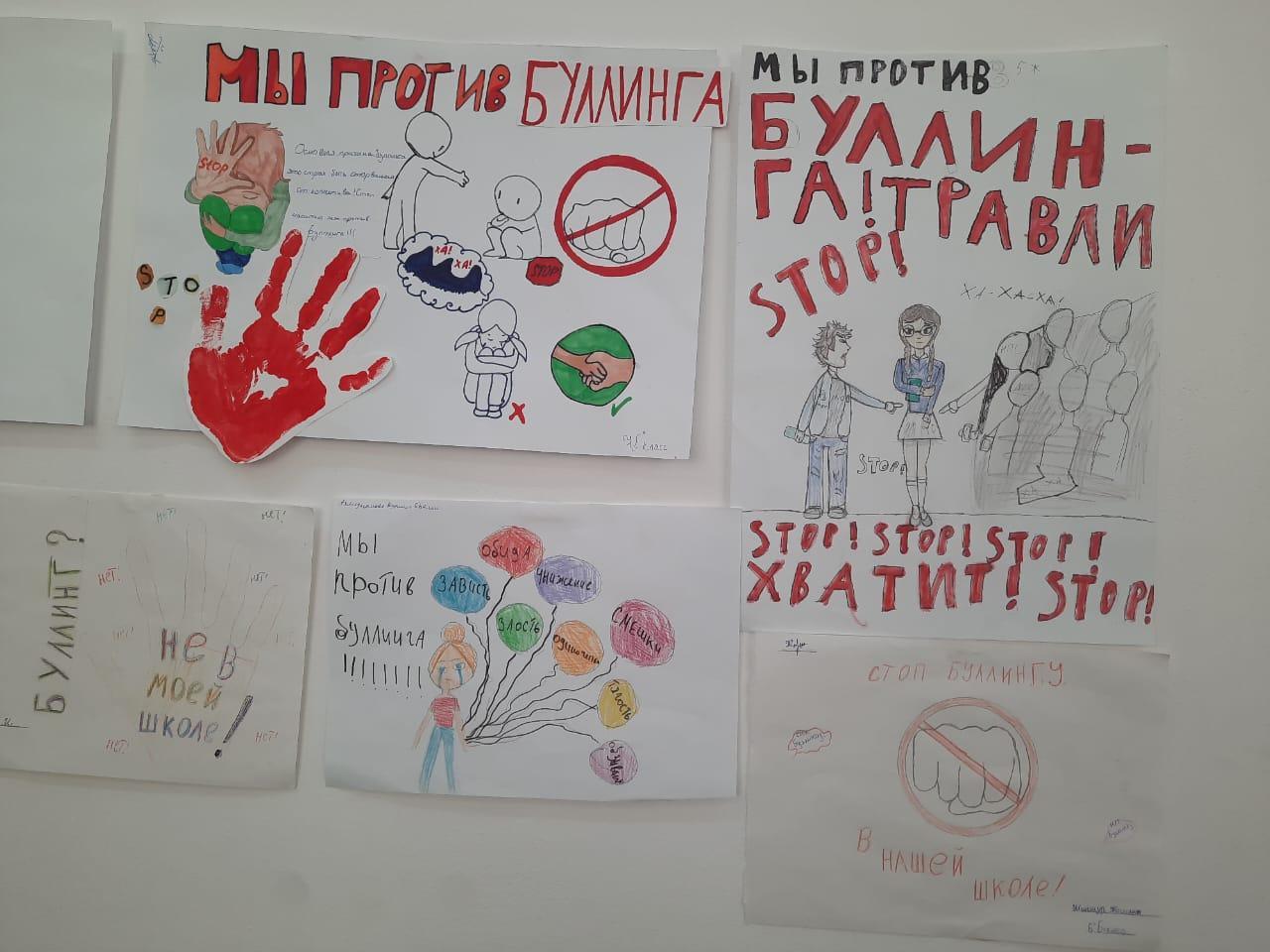 В КГУ ОШ№129 прошел конкурс плакатов на тему: "Стоп буллинг". Учащиеся каждого класса, постарались отразить в своих рисунках борьбу с буллингом и травлей со стороны сверстников и одноклассников.