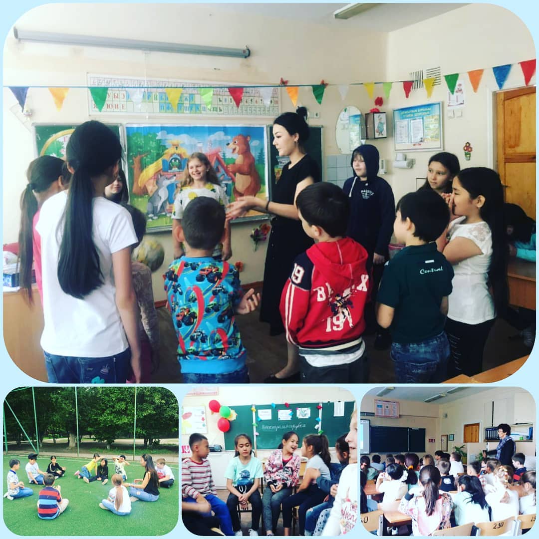 Пришкольный лагерь "Достық",вторую неделю ведёт свою работу. Вот так весело проходят уроки казахского и английского языка! Дети довольны работой наших педагогов и с удовольствием посещают лагерь, родителям спасибо большое за приятные отзывы!