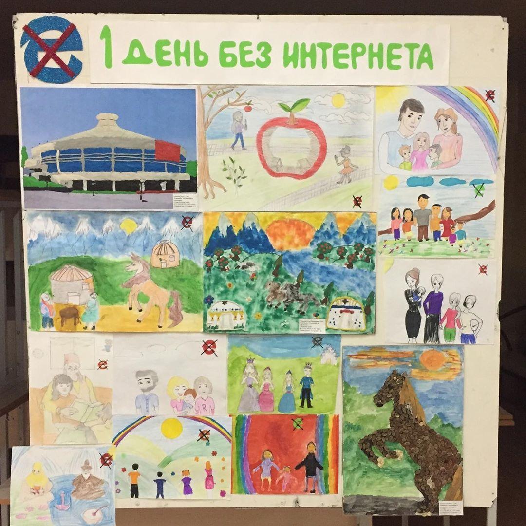 В рамках Республиканской широкомасштабной детской акции посвящённой Международному дню без интернета, проводился конкурс рисунков: «День без интернета». Цель: профилактика интернет зависимости, повышение культуры пользования Интернет ответственности взрослых пользователей, Интернет-услуг в отношении контроля за Интернет- активностью несовершеннолетних.