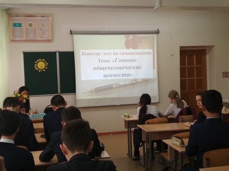 05.02.2020г. в рамках декады предмета «Самопознание: педагогика любви и творчества», проводился конкурс Эссе на тему: "Главные общечеловеческие ценности". Цель: воспитание духовно- нравственных качеств и привитие учащимся главных общечеловеческих ценностей, развитие речевых и творческих навыков.