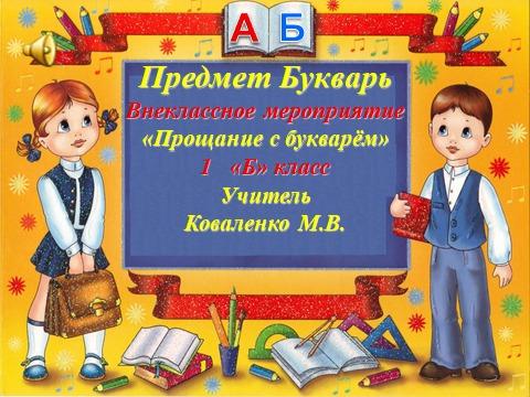 Пятый день декады. В 1 "Б" классе прошёл праздник "Прощание с букварём". Учитель Коваленко Марина Викторовна