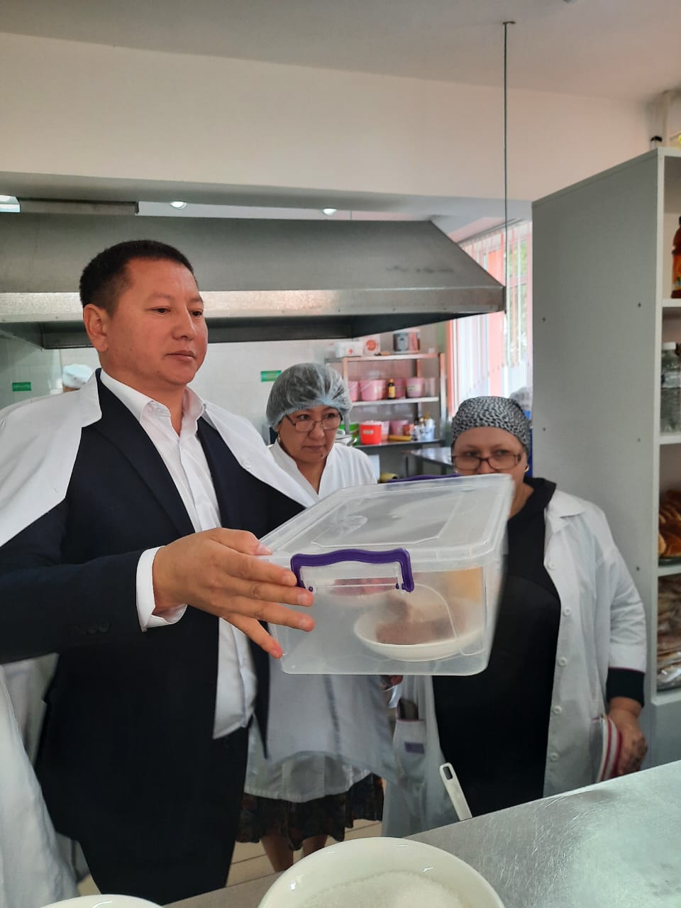 11 сентября 2023 года и.о.директора КГУ «ОШ 129» Мухаметжанов А.С. и председатель ПОП-совета Боприева О.Г. проверили работу школьной столовой.