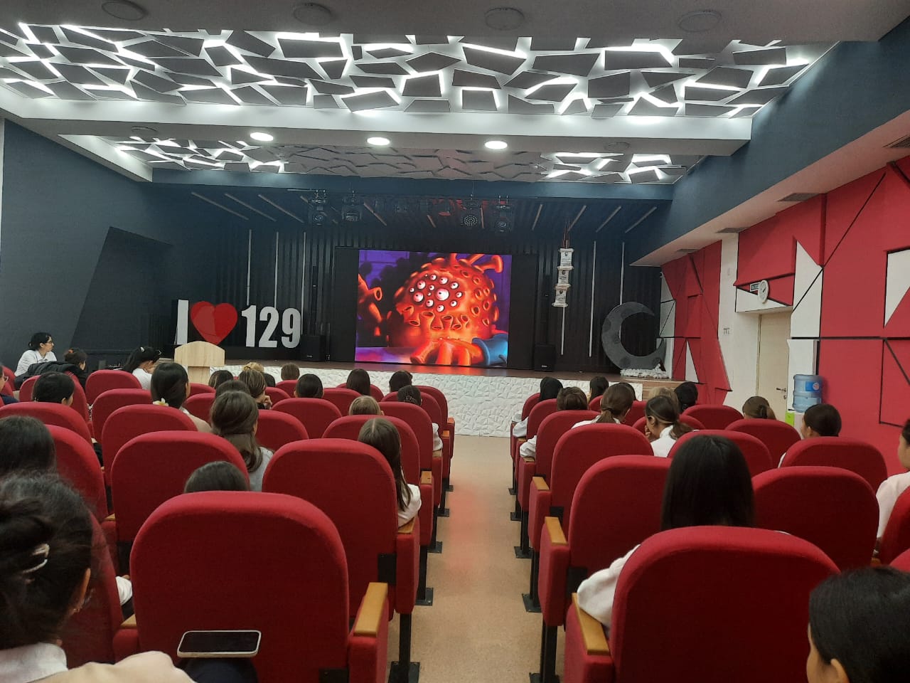 2 декабря в КГУ ОШ № 129 представитель поликлиники № 11, Сима Хусеиновна, врач-гинеколог, провела с учащимися профилактические беседы на тему гигиены девочек и ВИЧ, приуроченные к празднованию Дня борьбы со СПИДом 1 декабря.