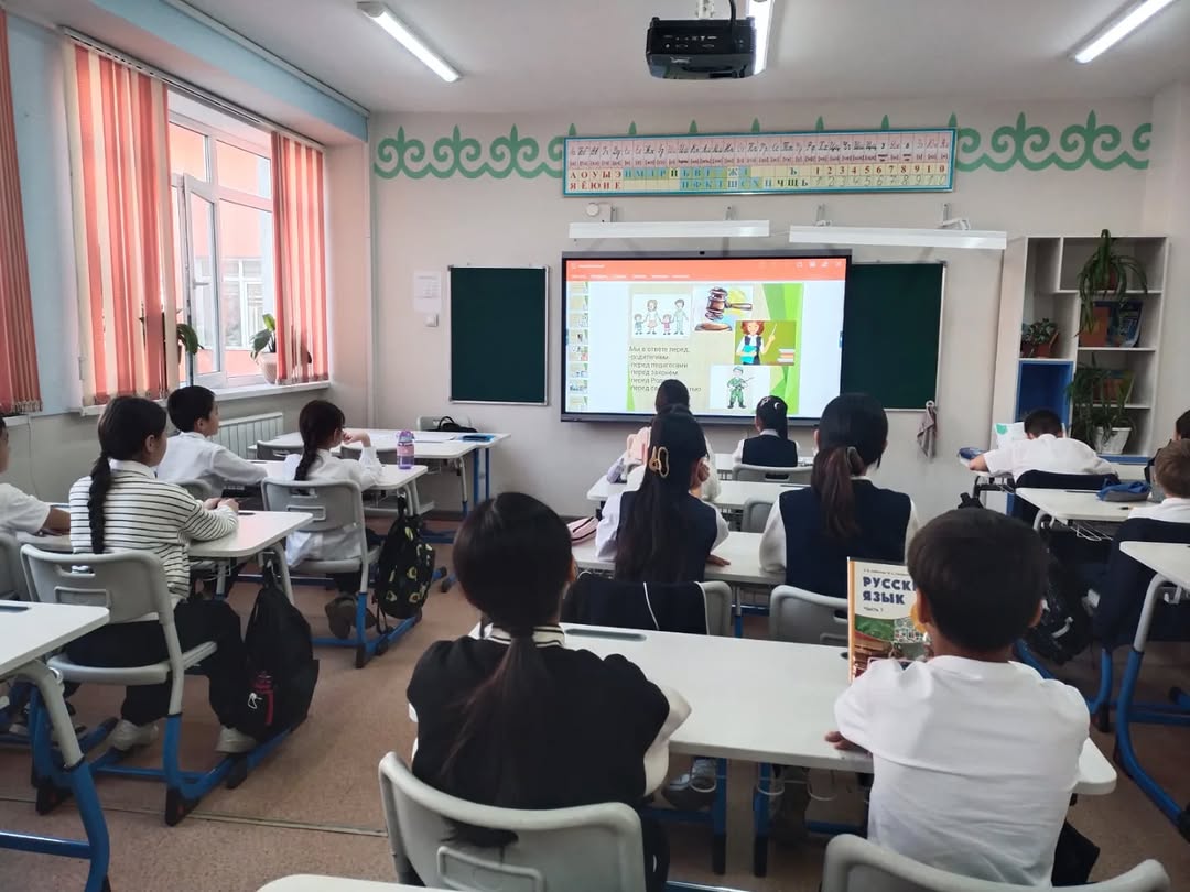 Дүниежүзілік балалар күніне орайластырылған "Балалардың құқықтарын қорғаудың 10 күні" дүниежүзілік акциясы аясында 5А сынып оқушыларымен "Мен өз құқықтарым туралы не білемін" тақырыбында сабақтар өткізілді.