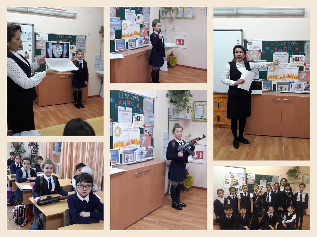 Согласно плана Жетысуского РОО и поддерживая проект районного филиала партии Нур Отан в рамках месячника посвящённой 30 годовщине вывода Советских войск из Афганистана проводились классные часы на тему: «Неизвестная война. День память воинов - интернационалистов». Цель часа: Расширить знания воспитанников по истории Афганской войны, воспитать уважение к защитникам Родины, развить патриотические чувства, осветить неизвестные факты, связанные с Афганской войной.