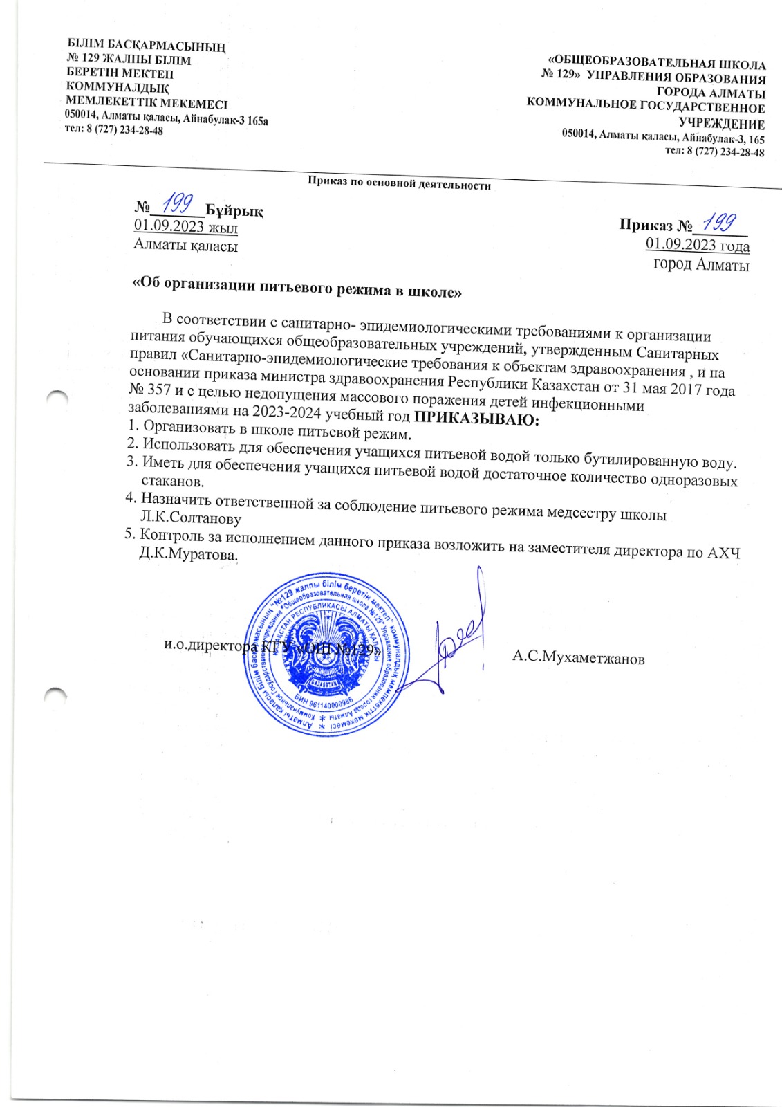 01 қыркүйек 2023 0 1 2 3 4 5 Бұйрық/ Приказ "Об организации питьевого режима" ob-organizacii-pitevogo.pdf [201,47 Kb] (cкачиваний: 7) Посмотреть онлайн файл: ob-organizacii-pitevogo.pdf Осы беттің QR-коды:QR-код этой страницы: