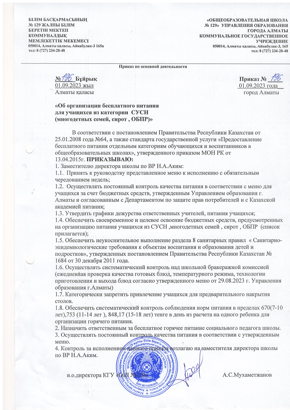 01 қыркүйек 2023 0 1 2 3 4 5 Бұйрық/ Приказ "Об организации бесплатного питания для учащихся из категории СУСН ob-organizacii-besplatno-pitanija-dlja-uchaschihsja-iz-kategorii-susn.pdf [284,57 Kb] (cкачиваний: 8) Посмотреть онлайн файл: ob-organizacii-besplatno-pitanija-dlja-uchaschihsja-iz-kategorii-susn.pdf Осы беттің QR-коды:QR-код этой страницы: