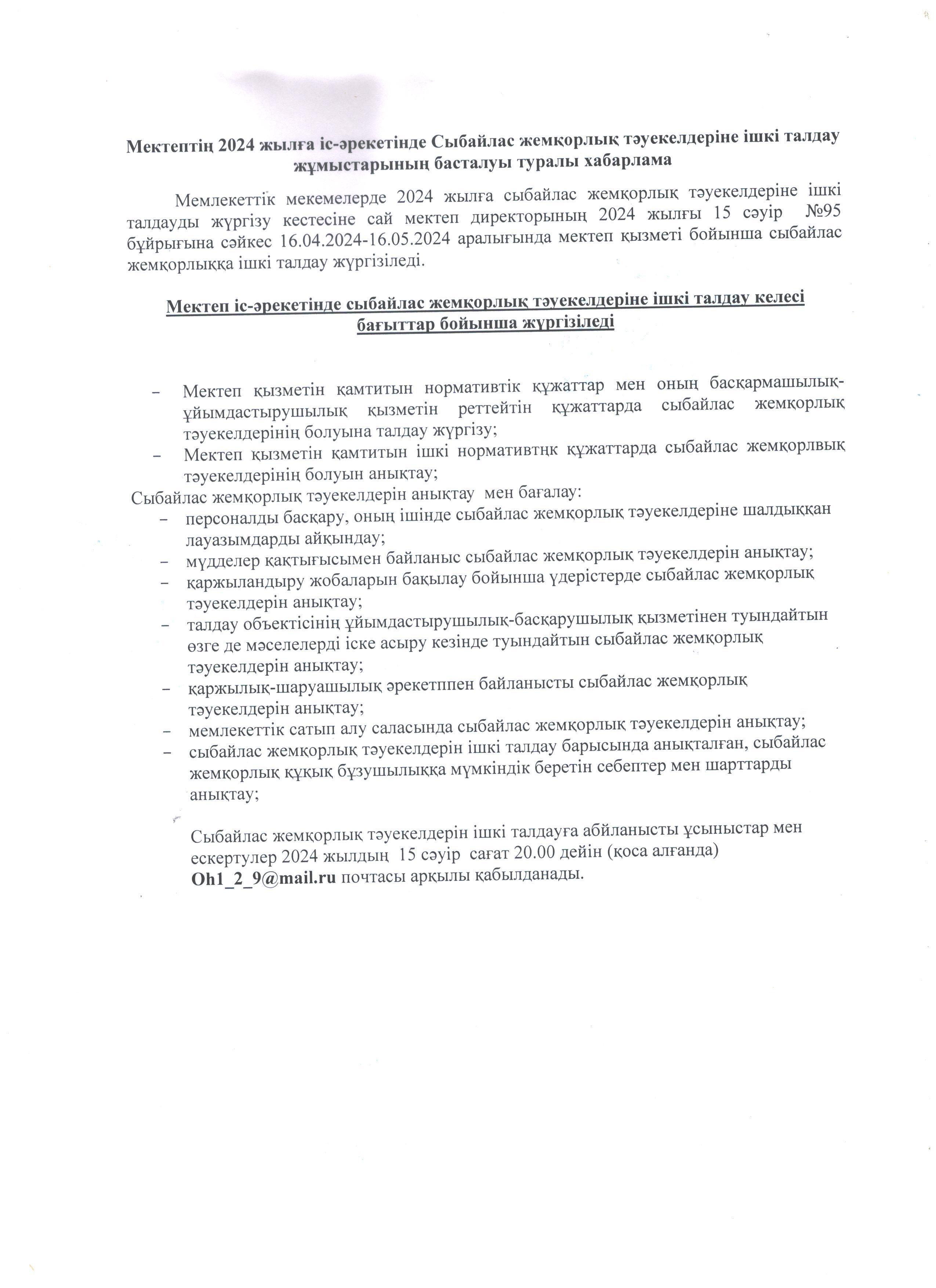 01 сәуір 2024 0 1 2 3 4 5 Сыбайлас жемқорлық тәуекелдеріне талдау жүргізу туралы хабарлама Осы беттің QR-коды:QR-код этой страницы:
