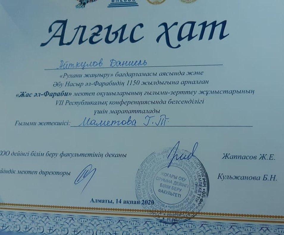 17 ақпан 2020 0 1 2 3 4 5 Поздравляем руководителя Маметову Г.Т., и детей!👏👏💐 Желаем дальнейших успехов! Поздравляем руководителя Маметову Г.Т., и детей!👏👏💐 Желаем дальнейших успехов! Осы беттің QR-коды:QR-код этой страницы: