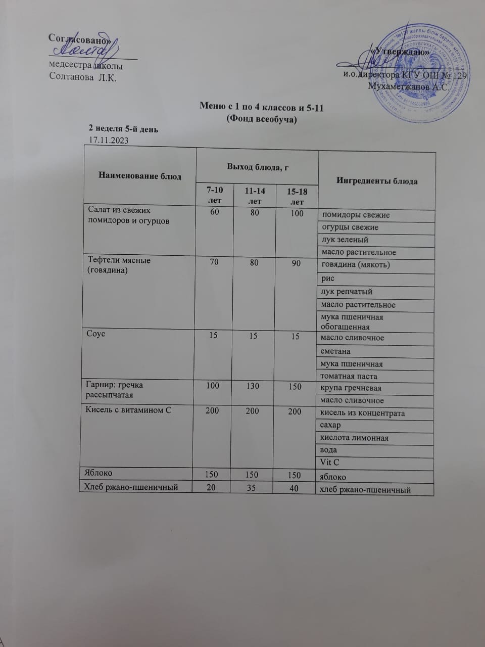 17 қараша 2023 0 1 2 3 4 5 17.11.2023 арналған асхана мәзірі/ Меню столовой на 17.11.2023 год Осы беттің QR-коды:QR-код этой страницы: