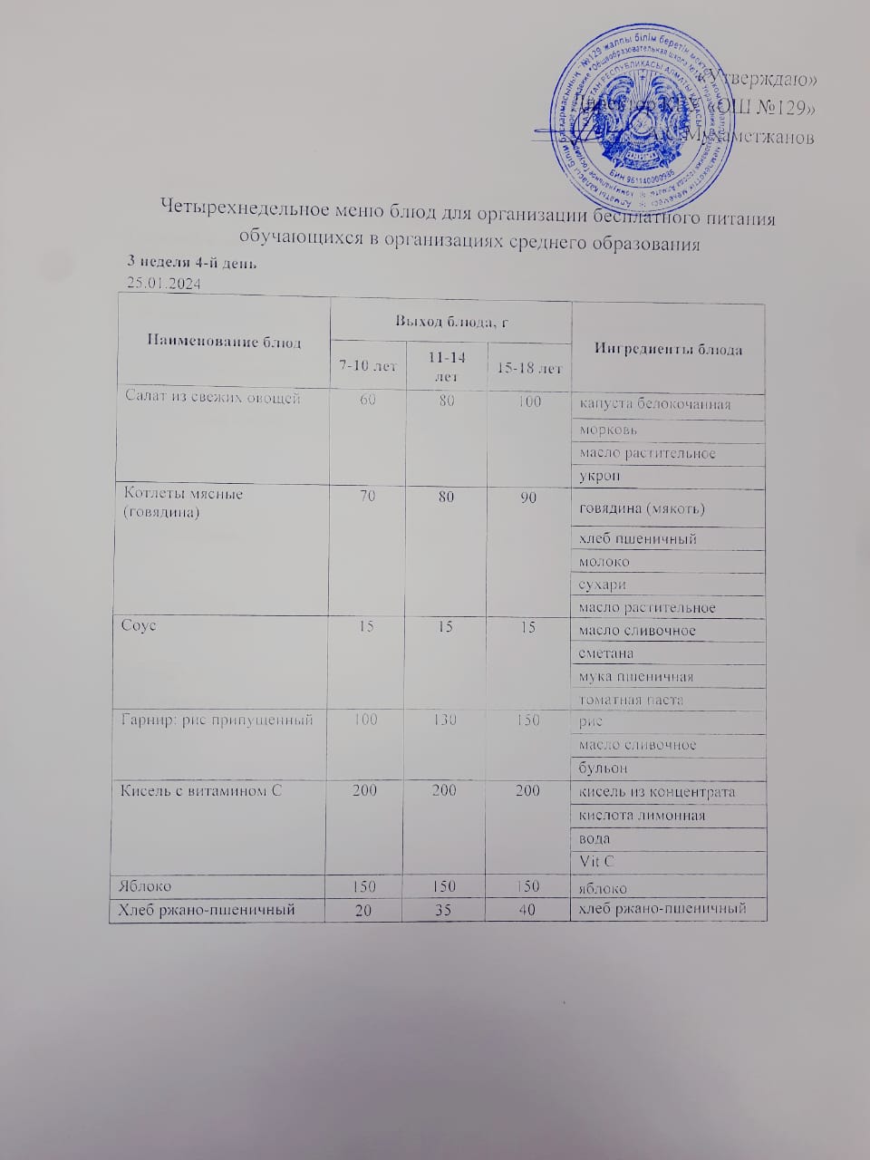 25 қаңтар 2024 0 1 2 3 4 5 25.01.2024 арналған асхана мәзірі/ Меню столовой на 25.01.2024 год Осы беттің QR-коды:QR-код этой страницы: