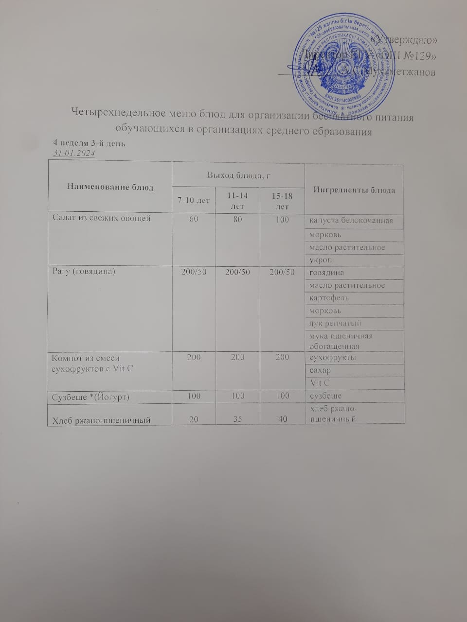 31 қаңтар 2024 0 1 2 3 4 5 31.01.2024 арналған асхана мәзірі/ Меню столовой на 31.01.2024 год Осы беттің QR-коды:QR-код этой страницы: