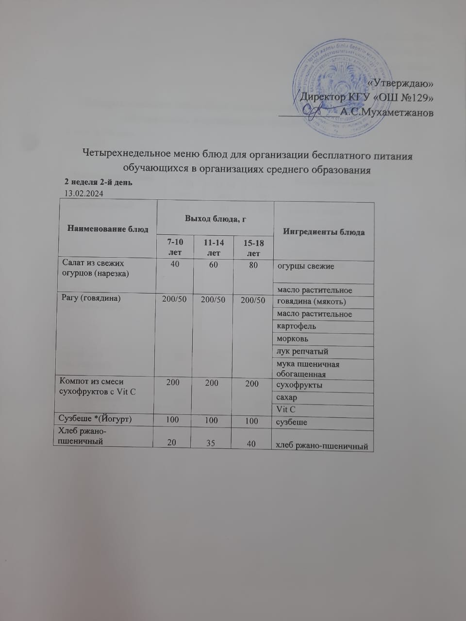 13 ақпан 2024 0 1 2 3 4 5 13.02.2024 арналған асхана мәзірі/ Меню столовой на 13.02.2024 год Осы беттің QR-коды:QR-код этой страницы:
