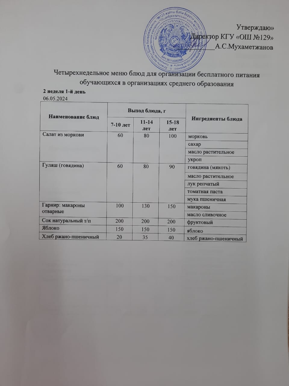 06 мамыр 2024 0 1 2 3 4 5 06.04.2024 арналған асхана мәзірі/ Меню столовой на 06.04.2024 год Осы беттің QR-коды:QR-код этой страницы: