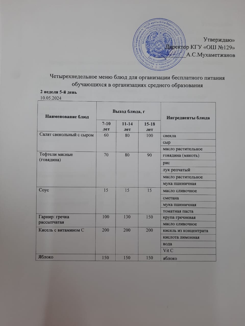 10 мамыр 2024 0 1 2 3 4 5 10.04.2024 арналған асхана мәзірі/ Меню столовой на 10.04.2024 год Осы беттің QR-коды:QR-код этой страницы: