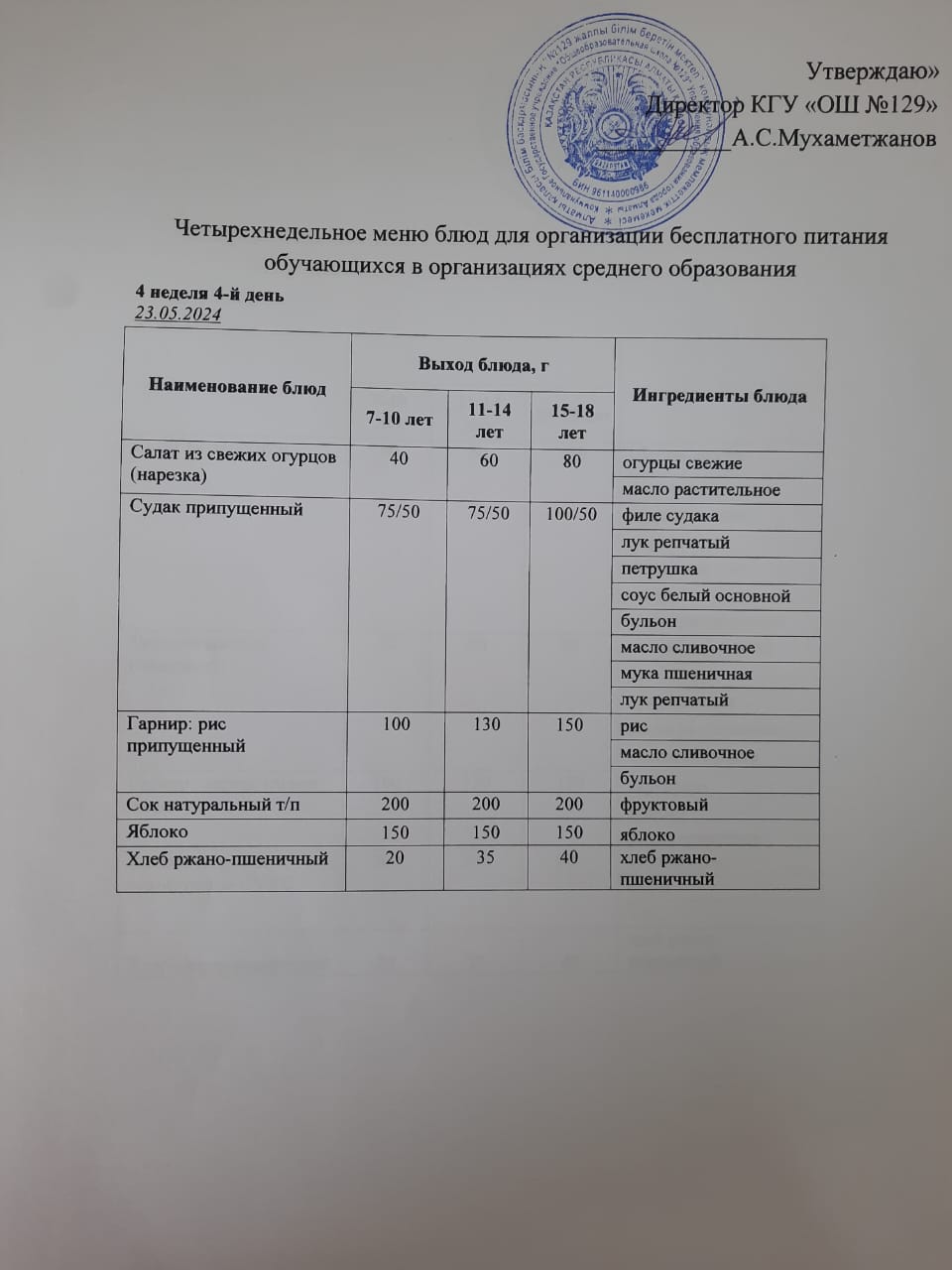 23 мамыр 2024 0 1 2 3 4 5 23.04.2024 арналған асхана мәзірі/ Меню столовой на 23.04.2024 год Осы беттің QR-коды:QR-код этой страницы:
