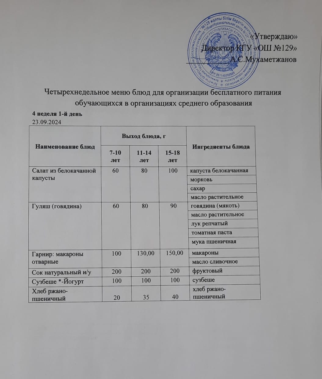 23 қыркүйек 2024 0 1 2 3 4 5 23.09.2024 арналған асхана мәзірі/ Меню столовой на 23.09.2024 год Осы беттің QR-коды:QR-код этой страницы: