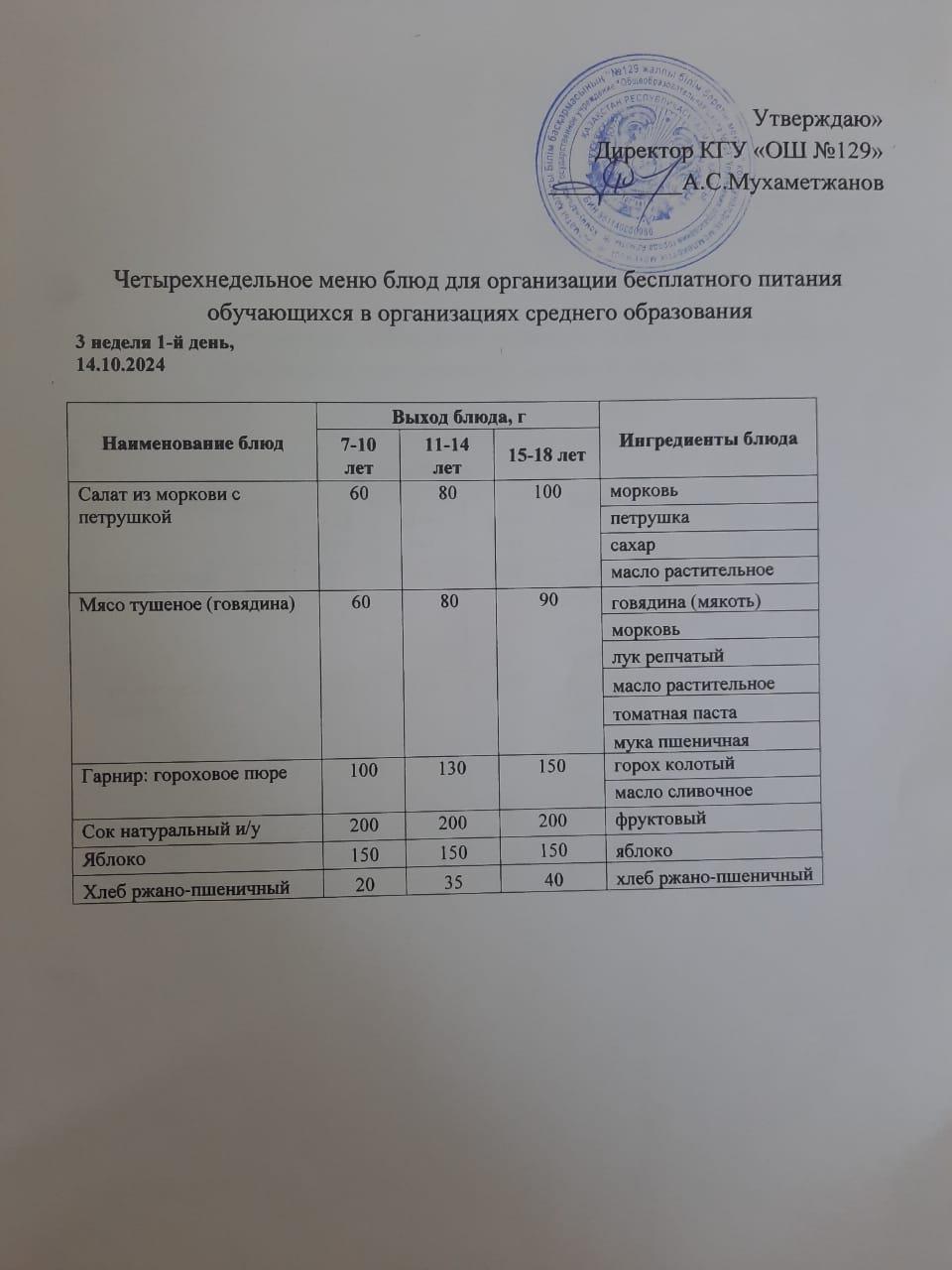 14 қазан 2024 0 1 2 3 4 5 14.10.2024 арналған асхана мәзірі/ Меню столовой на 14.10.2024 год Осы беттің QR-коды:QR-код этой страницы: