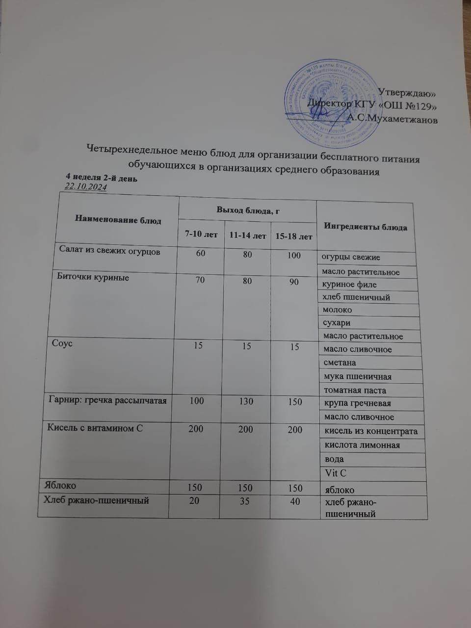 22 қазан 2024 0 1 2 3 4 5 22.10.2024 арналған асхана мәзірі/ Меню столовой на 22.10.2024 год Осы беттің QR-коды:QR-код этой страницы: