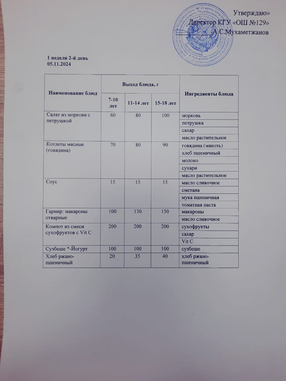 05 қараша 2024 0 1 2 3 4 5 05.11.2024 арналған асхана мәзірі/ Меню столовой на 05.11.2024 год Осы беттің QR-коды:QR-код этой страницы: