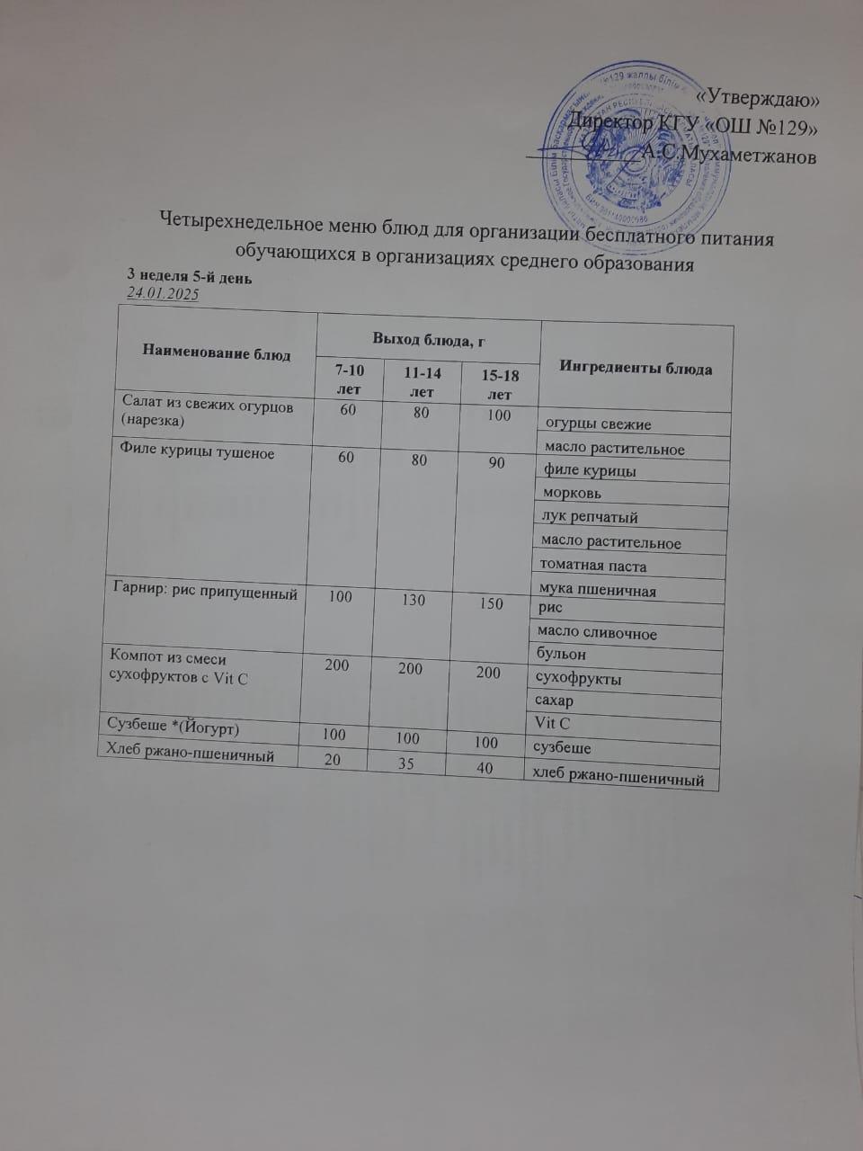 24 қаңтар 2025 0 1 2 3 4 5 24.01.2025 арналған асхана мәзірі/ Меню столовой на 24.01.2025 год Осы беттің QR-коды:QR-код этой страницы: