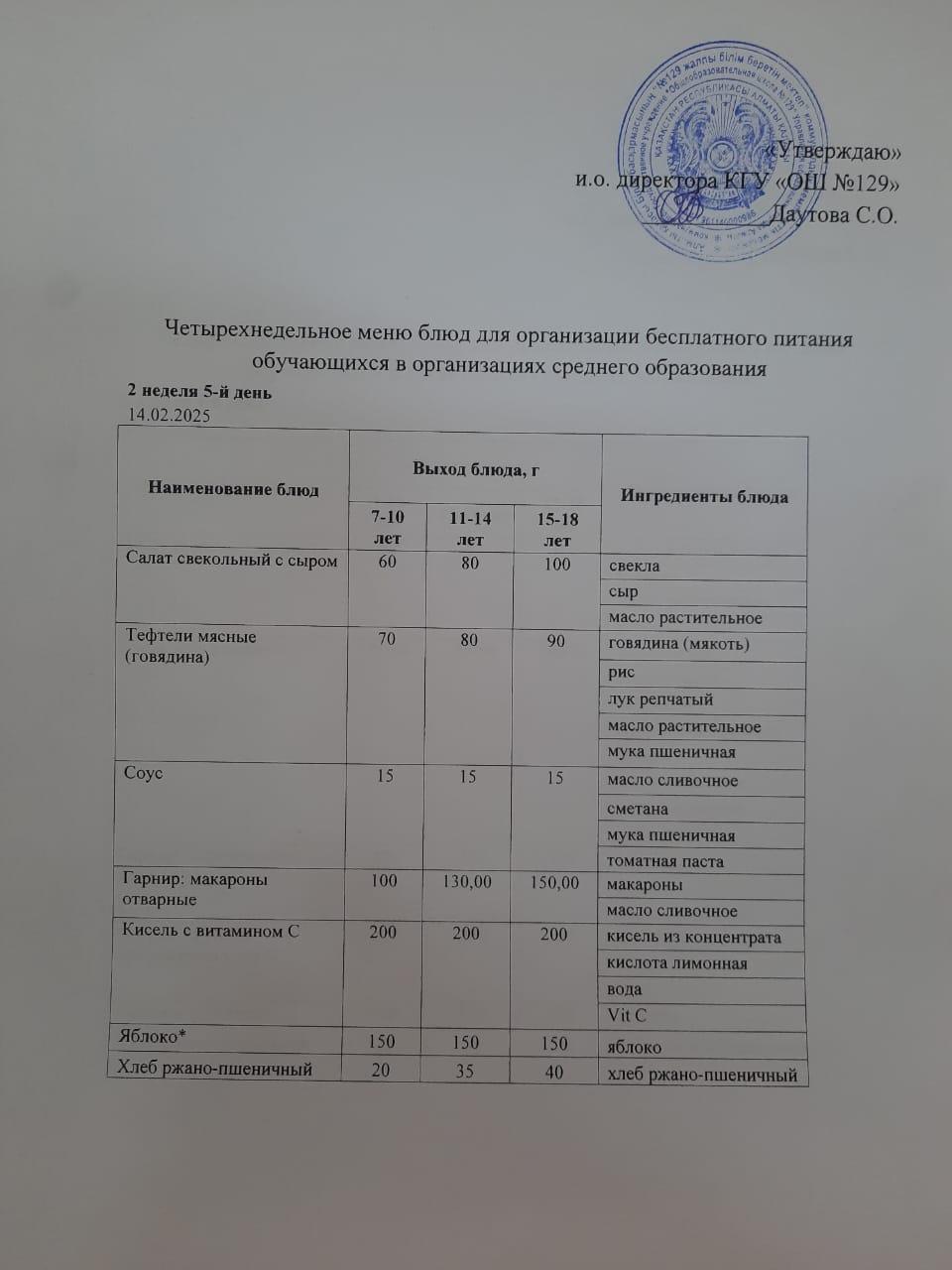 14 ақпан 2025 0 1 2 3 4 5 14.02.2025 арналған асхана мәзірі/ Меню столовой на 14.02.2025 год Осы беттің QR-коды:QR-код этой страницы: