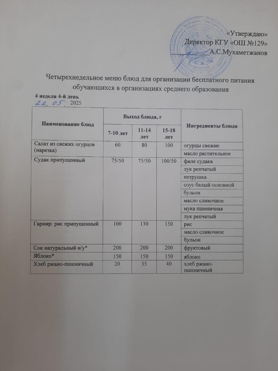 22 мамыр 2025 0 1 2 3 4 5 22.05.2025 арналған асхана мәзірі/ 22.05.2025 Меню столовой на год Осы беттің QR-коды:QR-код этой страницы: